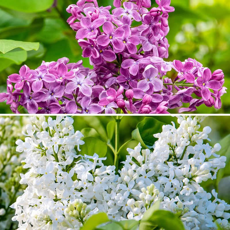 You don't need snowmelt to have a bursting springtime lilac display. Beach Party™ lilacs were bred specifically for southern gardens, with high heat tolerance and great cold hardiness. Beach Party™ lilacs have a low chill factor, meaning that they don't need a long winter to prepare for blooming. With this pair, you'll receive one each of Rosie Beach Party™ and Snowy Beach Party™ Lilac shrubs. Delightfully fragrant panicles of pink or white flowers appear in mid-late spring, and the hybridizing of these two lilacs means that they'll have similar sizing and habits. Rosie and Snowy make quite the addition to any corner of your garden, and combined make an elegant and fragrant springtime hedge. Syringa vulgaris 'Rosie' PPAF, 'Snowy'