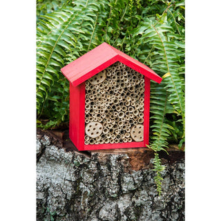 As bee populations continue to wane, more and more gardeners are finding ways to provide a safe haven for these highly beneficial insects. Our Bee Nesting House is specially designed for mason bees. Not content to live in nests like ordinary bees, non-stinging mason bees prefer making their homes in existing holes in wooden blocks. We suggest enticing them to visit your property by offering our premium-quality Bee Nesting House as a place for them to safely live and lay eggs. This carefully designed house is made of wood and bamboo tubes, which mason bees love to inhabit. Includes a metal hanger, or it can sit up on its own.8¼"Hx7½"Wx4¾"D