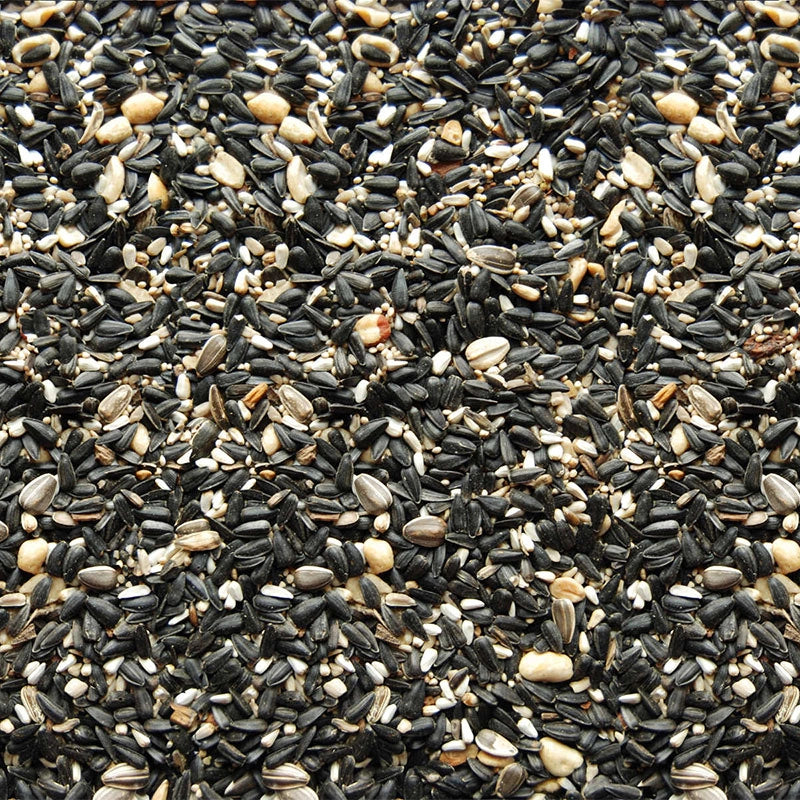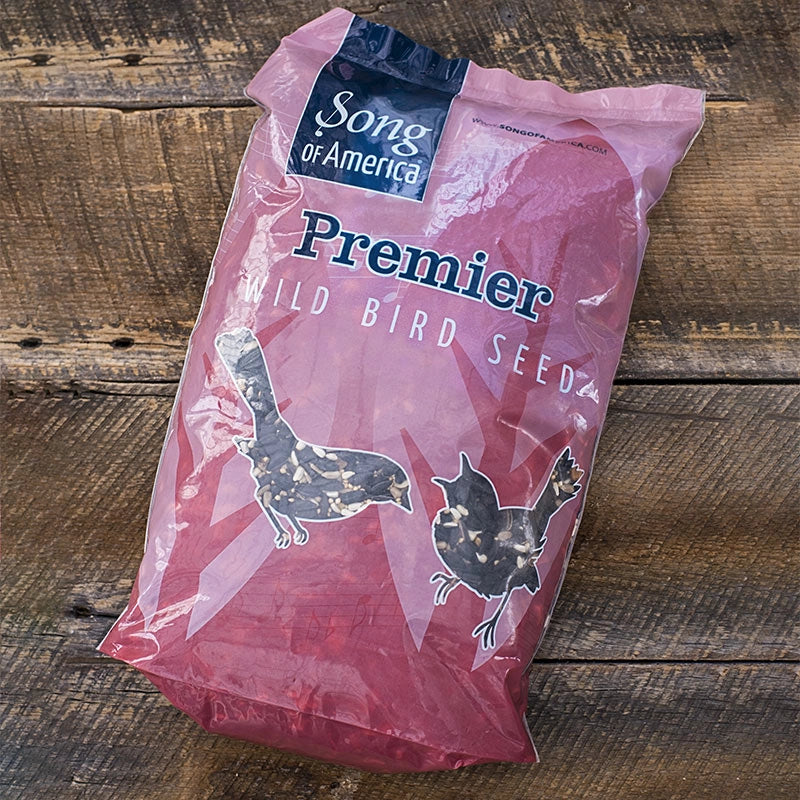 This mix includes Black Oil Sunflower, White Millet, Premium Chips, Safflower, Stripe Sunflower, and Shelled Peanuts. 5 lb bag.