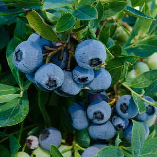 It has medium-sized, light blue berries with a wonderfully addicting, spritely flavor. Semi-dwarf matures at less than 3' tall, making it a perfect landscape plant. Tolerates a higher soil pH than most others. Showy, hot pink flowers fade to white and yield large crops. Evergreen foliage. Ripens late season. Zones 5 - 10.