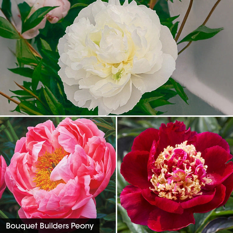 Bouquet Builders Peony Collection gives you a ready-made mix for cutting gardens and high-impact borders. You get three named peonies chosen for standout color, strong stems, and satisfying bloom. With early, midseason, and late bloom times included, this collection helps you enjoy fresh peony flowers across more of the season, with stems you can confidently bring indoors.
