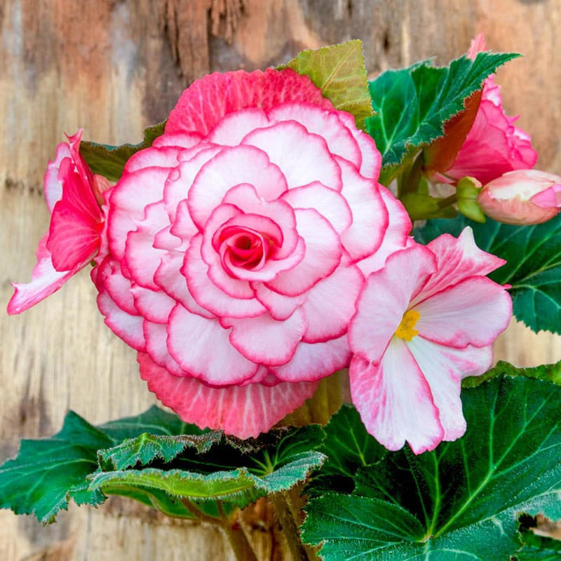Begonias thrive so well in hanging baskets, which is why it seems like everyone has them. It's a really strong choice, but you'll want one that's particularly striking if you want to stand out. Bouton de Rose is a particularly charming variety, because its doubling flowers form pretty rosettes in a bright and cheery bicolor. Whether you want to force it indoors for color out of season or give your house some curb appeal, this beautiful perennial is up for the task. It's easy to grow in a perennial shade garden, or you can do what gardeners love best and feature it in your hanging basket. What makes this begonia so perfect for baskets? It's just the right height and habit to cascade dramatically over the edges of a hanging basket, yet leaves a nice mound of flowers on top. It also has the ideal light requirements you'd want for a hanging basket, as you've usually got them hooked under a porch roof or pergola. Begonias thrive in that shady spot and still bring bright floral color all summer long, which isn't something many container garden favorites can boast. We should mention, you can grow this in full sun, if you want it in a patio pot. Begonia 'Bouton de Rose'