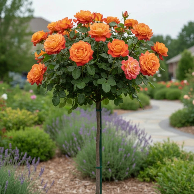 Unlike traditional shrub roses that grow from the base up, tree roses—also known as grafted standard roses—are specially cultivated by grafting a rose variety onto a sturdy, 2–3-foot tall trunk of rose rootstock. This horticultural technique allows favorite floribunda, grandiflora, hybrid tea, or even climbing rose varieties to take on an elegant tree-like form. The result is a dramatic garden feature: a vertical accent that elevates lush, colorful blooms to near eye level. Tree roses offer a refined structure and bring added dimension to flower beds, borders, and containers alike.