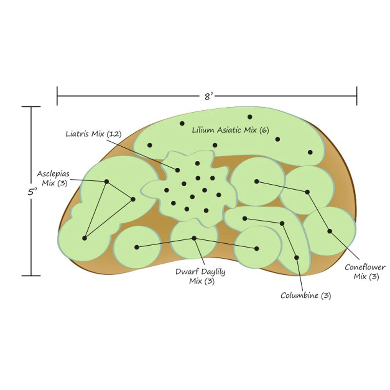 It's easy to create a garden that butterflies love with our Butterfly Garden Kit. This kit contains 30 perennials that will fill a 5'x8' flowerbed and attract butterflies for months. It's perfect for the homeowner who wants to create a new flowerbed or the beginner gardener. It's also a thoughtful housewarming gift. All the perennials are easy care—and all produce colorful flowers that you and the butterflies will enjoy. The Butterfly Garden Kit includes: 6 Asiatic Lilies Mixed, 12 Liatris spicata (white and purple), 3 Columbine Mix, 3 Dwarf Daylilies (red, pink and yellow), 3 Coneflowers (purple, white and yellow) and 3 Asclepias (orange and white)