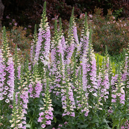 Find your fairytale with Camelot Lavender Foxglove. These tall, lavendar-mauve spikes reach like a castle's tower toward the sky, standing up to three feet in length. Each thimble-shaped bloom starts creamy yellow in the bud and opens to shades of lavender to mauve. Camelot Foxglove is perfect for beds and borders, and it performs just as well in a city or courtyard garden as it does in country and cottage habitats. Foxglove attract all manner of pollinators, including, butterflies, and hummingbirds with its showy flowers. It performs well in a variety of soil, and flowers are reliable the first year. Try pairing this beautiful foxglove with other foxglove for a bright storybox mix. Digitalis purpurea 'Camelot Lavender'
