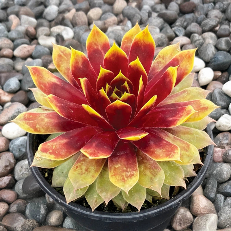 Bigger Size, Brighter Impact: Unlike standard hens & chicks, this cultivar produces extra-large rosettes that command attention. The golden-yellow foliage is tinged with orange-red highlights; these intensify with cooler weather for dynamic, multi-season interest.