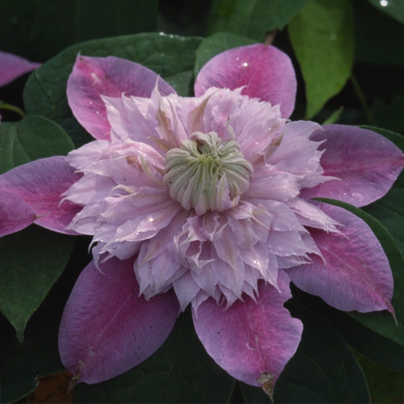 A stunning climber with fully double, layered blooms, this clematis captivates with dramatic, long-lasting floral displays. Large, 5” lilac base sepals surround pom-pom centers of soft pink, with flowers evolving in shape and form as they mature. The long life of the blooms helps extend the blooming season from June through August, Josephine Clematis delivers continuous beauty to your garden all summer long.