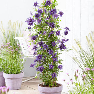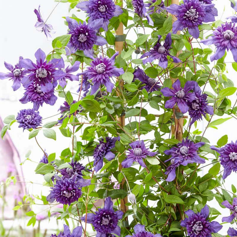 These blooms are 3-dimensional with layers of rich-hued sepals. They look delicate and detailed, but Kokonoe is no pushover. It's a resilient come-again plant, so if you cut it down after its first flowering, it'll grow new for a second show. That means you'll have both early- and late-summer flowers to dress up your landscape. And with that many blooms, you might as well grab a few to enjoy around the home, clematis are surprisingly strong cut flowers, and the exciting flower form of Kokonoe will be a special treat in the vase. As it is just hardy down to 5?, this is a great one for container gardening in cooler regions, where you can bring it in when the weather gets chilly. Put a trellis or tuteur in the pot for it to climb up, keeping the vine close and the flowers in the spotlight. Kokonoe has had the high honor of been shortlisted for the coveted Plant of the Year award for the RHS Chelsea Flower Show in 2019. Clematis 'Kokonoe'