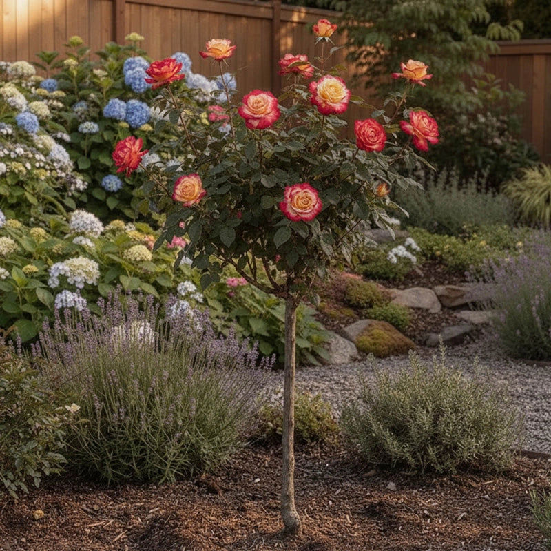 Unlike traditional shrub roses that grow from the base up, tree roses—also known as grafted standard roses—are specially cultivated by grafting a rose variety onto a sturdy, 2–3-foot tall trunk of rose rootstock. This horticultural technique allows favorite floribunda, grandiflora, hybrid tea, or even climbing rose varieties to take on an elegant tree-like form. The result is a dramatic garden feature: a vertical accent that elevates lush, colorful blooms to near eye level. Tree roses offer a refined structure and bring added dimension to flower beds, borders, and containers alike.