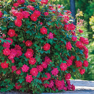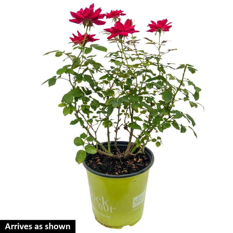 Everything you love about Knock-Out roses--in double and bigger than ever. This maintenance-free, shrub-style rose produces fully doubled, hot-red flowers with a sweet, spicy fragrance reminiscent of cinnamon candy. A "self-cleaning" rose, Double Knock Out won't require deadheading for a new round of blooms. This continually blooming rose has a nice, long flowering season, with blossoms that look great as cut flowers. Rounded, bushy, and extremely well-behaved, this shrub rose serves beautifully in a low hedge or as a pretty accent. Unsurpassed resistance to black spot, downy mildew, and other diseases.