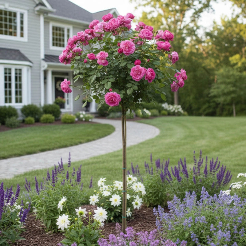 Unlike traditional shrub roses that grow from the base up, tree roses—also known as grafted standard roses—are specially cultivated by grafting a rose variety onto a sturdy, 2–3-foot tall trunk of rose rootstock. This horticultural technique allows favorite floribunda, grandiflora, hybrid tea, or even climbing rose varieties to take on an elegant tree-like form. The result is a dramatic garden feature: a vertical accent that elevates lush, colorful blooms to near eye level. Tree roses offer a refined structure and bring added dimension to flower beds, borders, and containers alike.
