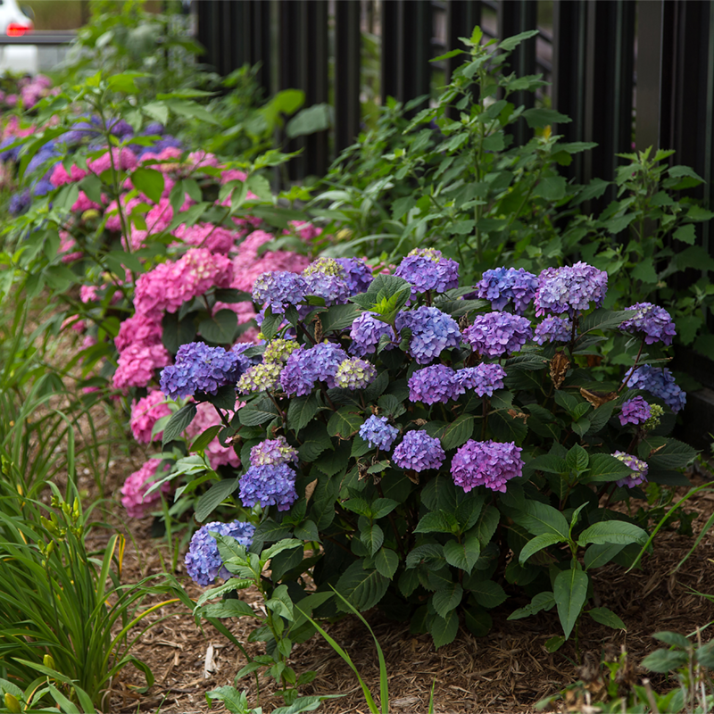 A true remontant hydrangea, Bloomstruck flowers on both old and new wood, improving on the classic Endless Summer® to bring truth to its name. With blooms so large and vibrant that you won't believe you'll have all summer to enjoy them, Bloomstruck® hydrangea produces mophead-style flower heads alongside dark green leaves. Its color is dependent upon soil pH, producing rose-pink blooms in alkaline soils and violet or blue flowers in acidic soils. Endless Summer® also features lovely red-violet stems and attractive veining, providing a beautiful backdrop to all those gorgeous blooms. Size and shape maintenance are easy, and require only minimal pruning after the blooming season. Above-average heat tolerance and mildew resistance make this compact hydrangea the perfect addition to your summer garden. Hydrangea macrophylla 'PIIHM-II' PP255666