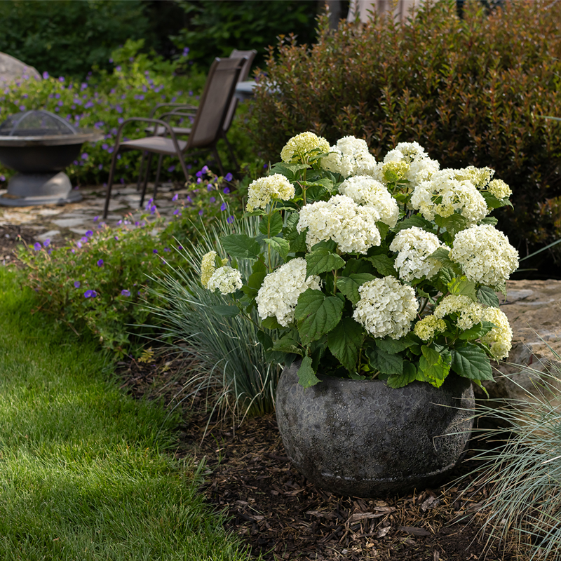 A breakthrough variety bred for impressive flower density, FlowerFull lives up to its name by producing 2-3 times more blooms than other smooth hydrangeas. Large, white mophead flowers appear in early summer, held up by sturdy stems that stand tall through wind and rain—no need for staking. Plus, it’s got excellent resistance to mildew and leaf spot. Premium size. Hydrangea arborescens ‘Baiful’ PP35613