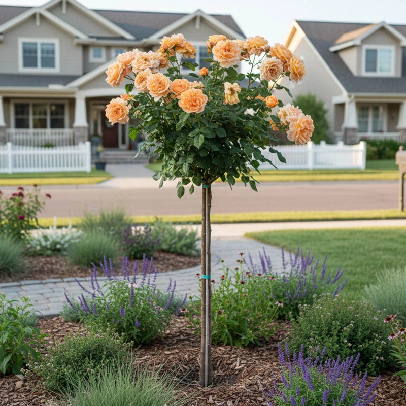 Unlike traditional shrub roses that grow from the base up, tree roses—also known as grafted standard roses—are specially cultivated by grafting a rose variety onto a sturdy, 2–3-foot tall trunk of rose rootstock. This horticultural technique allows favorite floribunda, grandiflora, hybrid tea, or even climbing rose varieties to take on an elegant tree-like form. The result is a dramatic garden feature: a vertical accent that elevates lush, colorful blooms to near eye level. Tree roses offer a refined structure and bring added dimension to flower beds, borders, and containers alike.