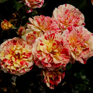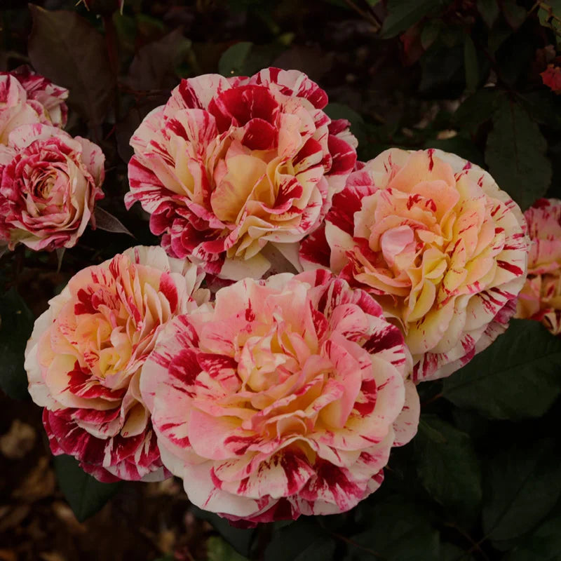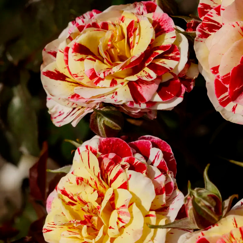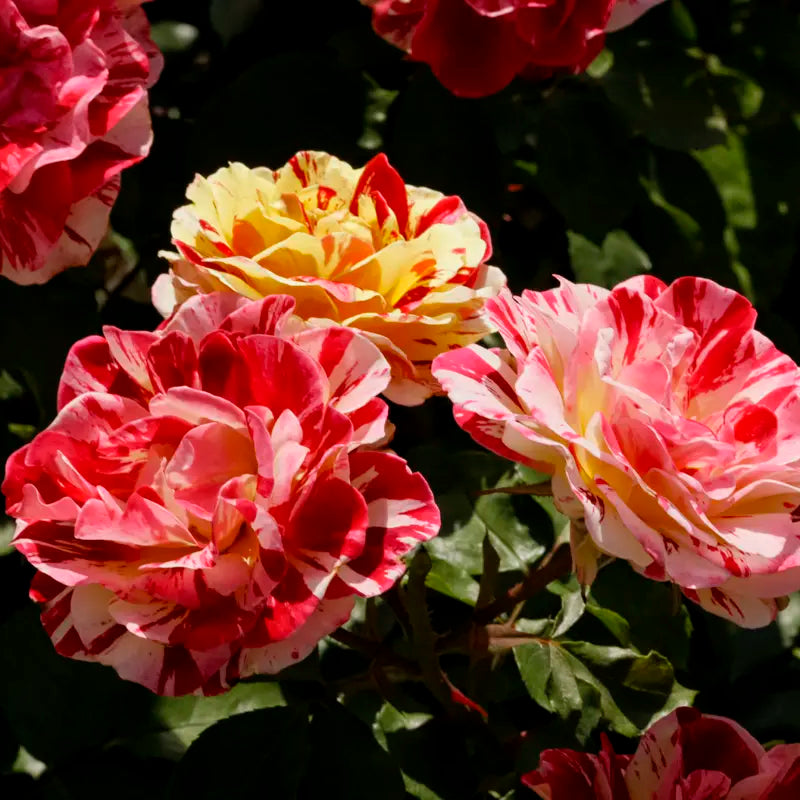 There’s something different about this rose. George Burns™ Floribunda doesn’t bloom in just one color—instead, it produces a mix of them all at once. You’ll see yellow, pink, red, and cream, sometimes all on the same flower. The color mix changes with the weather, so the plant never looks exactly the same from week to week. That shifting color makes this rose feel a little playful, and it gives your garden something new to look at all season.