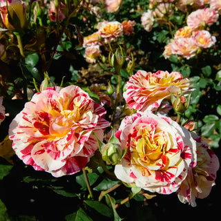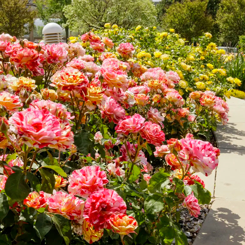 Blooms That Change from One Day to the Next: Each cluster of flowers brings its own combination. Some blooms lean pink, others show off streaks of yellow and red, and cooler days bring out even more yellow. It’s the kind of rose that makes people stop and take a closer look—mostly because no two blooms ever seem to match.