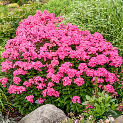 Vibrant Coral-Pink Blooms: Glamour Girl Tall Phlox boasts large, stunning flowers in a vibrant and coveted coral-pink hue. These showy blooms create a striking focal point in any garden and add a splash of color that lasts from mid-summer into early fall.