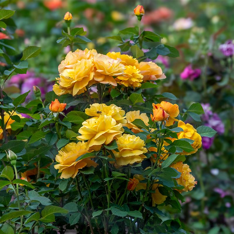 It's so enjoyable to watch these blooms grow—as they mature, they'll turn from orange to gold to amber. The tall, bushy and upright habit is beautiful in the garden, with very clean, disease resistant foliage. You should also grab some for a fresh bouquet, they'll light up a room. Rosa cv. 'WEKgobafa' PPAF