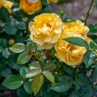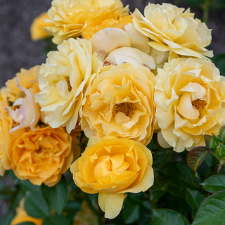 This rose was chosen by Julia Child herself for its rich butter-gold color and delicious anise scent. It performs excellently in all climates. It is very disease resistant and repeat-blooms until the first frost. The blooms open in lavish abundance on a bush that's a modest 3' tall and wide, with a full and rounded form. It puts on a remarkable performance in a sunny bed or border. Rosa 'WEKvossutono' PP18473
