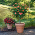 This standout floribunda variety is elevated—literally and visually—as a tree rose, grafted atop a central cane for vertical flair. Jump for Joy delivers large, long-lasting clusters of peachy-pink blooms, beautifully contrasted by deep red new growth and glossy green leaves. With its consistent flower power and colorful presence, this tree rose brings height, cheer, and charm to patios, borders, and small-space gardens alike. A joyful performer from every angle.