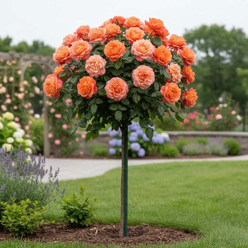Unlike traditional shrub roses that grow from the base up, tree roses—also known as grafted standard roses—are specially cultivated by grafting a rose variety onto a sturdy, 2–3-foot tall trunk of rose rootstock. This horticultural technique allows favorite floribunda, grandiflora, hybrid tea, or even climbing rose varieties to take on an elegant tree-like form. The result is a dramatic garden feature: a vertical accent that elevates lush, colorful blooms to near eye level. Tree roses offer a refined structure and bring added dimension to flower beds, borders, and containers alike.