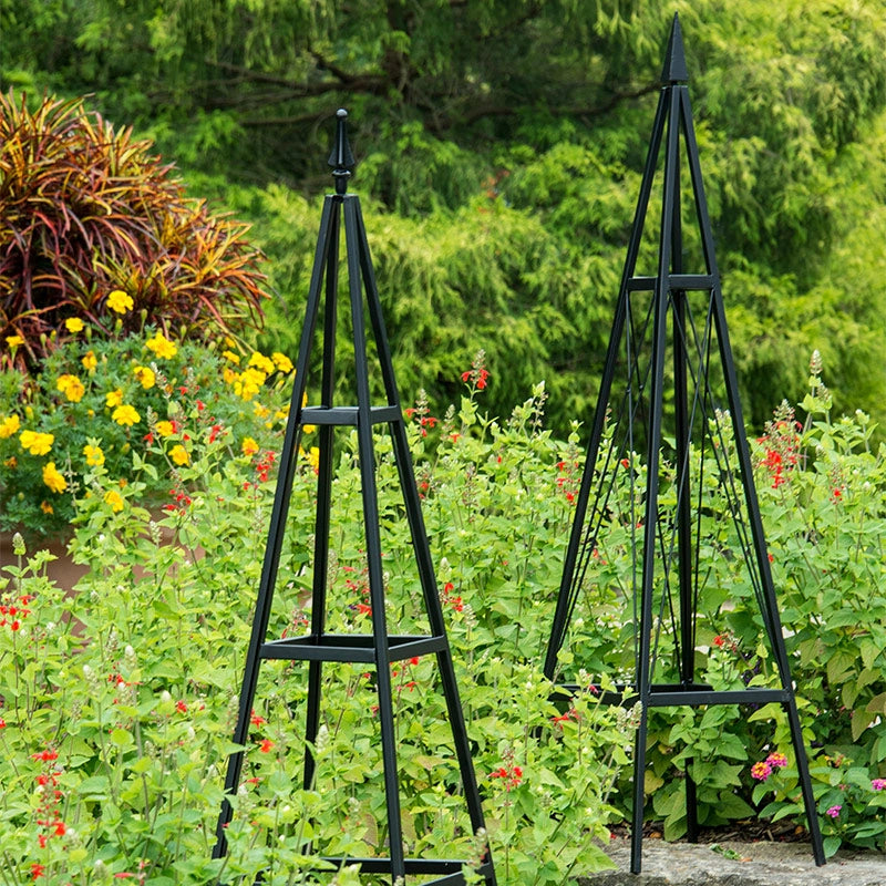 Create an architectural focal point with this exclusive hardscape piece from Spring Hill. Perfect for adding interest to container plantings or as a stand-alone decorative display, our Metropolitan Tuteur boasts clean, classic lines and a sturdy steel construction. It makes a fine addition to mixed beds, supporting heavily flowered vines, such as clematis or mandevilla, with ease. For an impressive exhibit in the vegetable garden, use this tuteur as a support for patio tomatoes, cucumbers or any other vining edibles. Beautifully designed, with a black powder coat finish for years of enjoyment. Suitable for use in the ground or in pots 16" or larger. Some assembly required. 52"Hx14"Wx14"D.