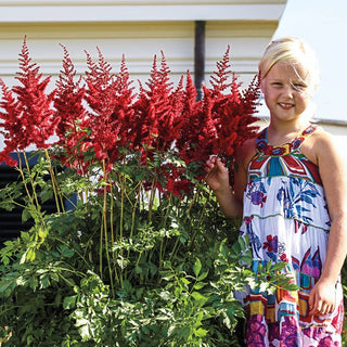 Watch in awe as bronze foliage matures to a deep green behind your other shade-loving varieties. Bright red plumes contrast perfectly with bleeding hearts, hosta and more. Deer and rabbit resistant, this tall stunner excels in the garden year after year.