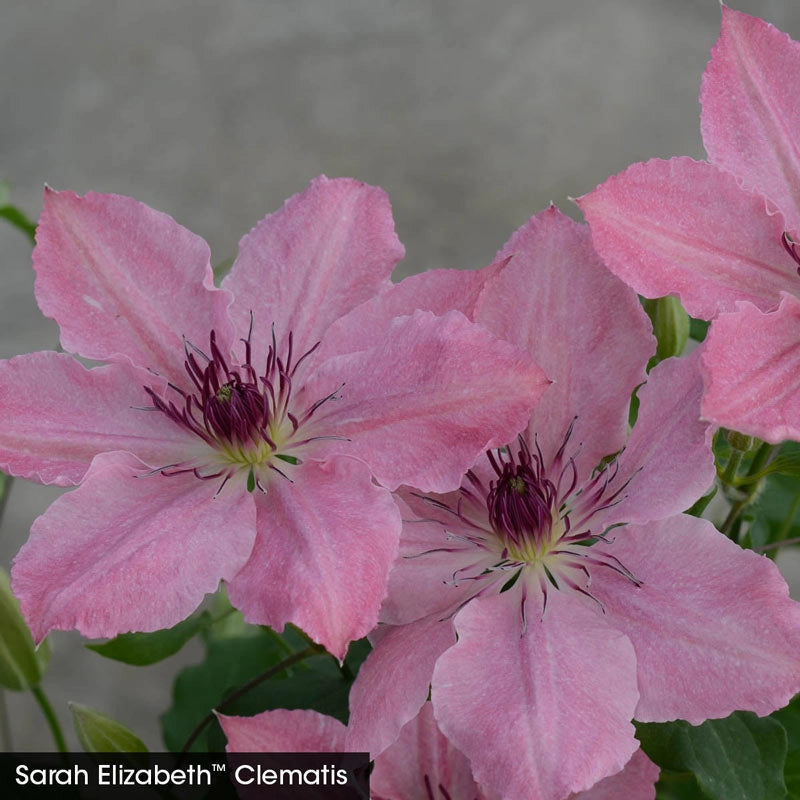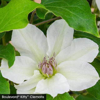 There are so many advantages to patio and terrace gardening; you have fragrance and color where you entertain, you can change your palette every season, and caring for your plants is a breeze. Clematis breeders have responded to popular demand for large flowering varieties on smaller stature plants with cultivars that were only found in gardener's dreams a few years ago. Raymond Evison, renowned clematis breeder from Guernsey, specializes in these small but mighty plants and Kitty and Sarah Elizabeth are two of the best in in his Boulevard tm series. Katharina is a European introduction rarely found in North America, that adds wavy-edged sepals and a lively red-anthered center to the mix. Try these in containers, or in a patio border with a smaller (4') tuteur or obelisk. One creative idea is to add to a window box – they make the perfect "spiller". Includes one each of Clematis 'Katharina', C. 'Kitty', and C. 'Sarah Elizabeth'