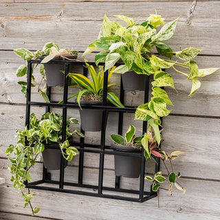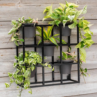 We first saw walls of potted plants while traveling through Europe, looking for the best in gardening to add to our line. We were inspired to create our own design for the home gardener--the effect of strong lines and lush greens is just too lovely to pass up. The Potted Wall Display has a very modern, contemporary look. We like it hanging on a blank wall, free-standing along a patio ledge or stacked in multiples to create a sort of ""wall"". It's great for making "rooms" in the landscape, too. You can use it to help section off a seating area and make it cozier. Or, use a wall to create a private gallery for your best blooms. Made of substantial, heavy powder-coated metal. Requires some simple assembly. 19.5"Hx19.5"Wx7"D
