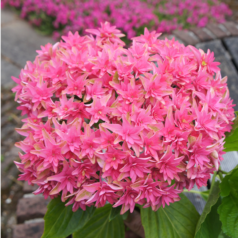 Big clusters of doubling, star–shaped blossoms stay upright on strong stems. An exciting modern flower form for hydrangeas, which will surprise and delight in a fresh bouquet. Choose your color based on your soil pH, more acidic soils produce a bluer bloom, and this lovely pink hue comes from neutral to alkaline soils. Whichever color you prefer, these delicate tones will pop over the rich green foliage. Once the flowers finally fade in autumn, the foliage takes on a bronzy tone, providing an extra season of garden interest. Princess Diana provides an elegant touch in patio planters and small woodland borders, as the big floral display comes on a compact habit. Hydrangea macrophylla x paniculata 'H213'