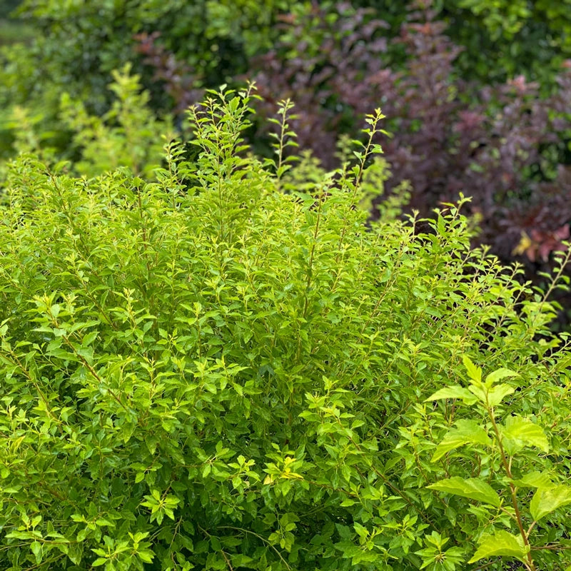 Golden-Green Foliage Lights Up the Landscape: Unlike darker ninebark varieties, Raspberry Lemonade features luminous leaves that add contrast and warmth to borders and foundation plantings. The foliage holds its color through the season, creating a soft backdrop that pairs beautifully with flowering perennials and evergreens. A tidy growth habit keeps the plant looking polished without frequent pruning.