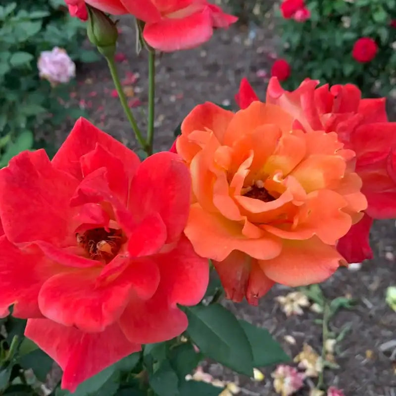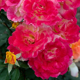 The unusual multicolored petals make these blooms glow magnificently—especially when the sunlight hits them. For a rose, this is one of the earlier flowering varieties, starting in late spring and going to fall. The bright blooms are brimming with layers and layers of petals. Good news for northern zones, Rio Samba's color and bloom size tend to be at their most magnificent in cooler climates.