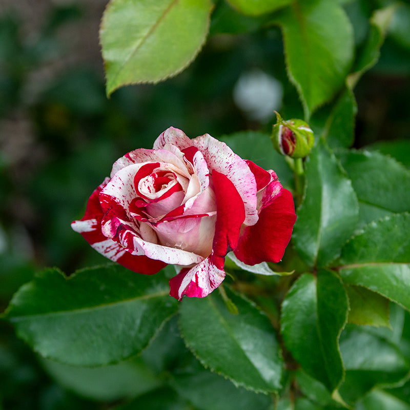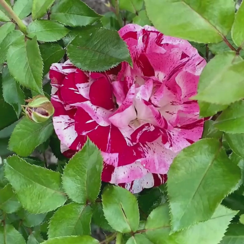 Beautiful, high-centered buds unfurl to show off a fantastic blend of burgundy, red and ivory – and they just keep coming from late spring to fall's end! They get even bigger when nights are cooler, shining against the glossy foliage covering bushy plants that grow a modest 4' tall and 3-4' wide. Zones 4-10. Bareroot. Rosa cv. 'WEKgobnez' PP20936.