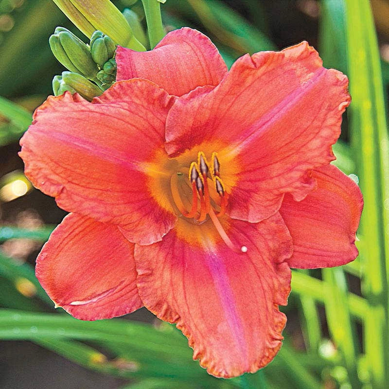 Bright and bold, this award-winning reblooming daylily brings its awesome color and a dependable reblooming habit to your borders, pollinators gardens and decorative containers. Appearing in midsummer, with another round of blooms emerging in the later part of the season, South Seas bears large, 5½" flowers that are a real treat for hummingbirds, butterflies and pollinating bees. For that reason alone, we suggest planting a generous number of these boldly hued beauties. But we know you'll be enchanted by the dainty ruffles and soft, supple petals, too. Daylilies are drought tolerant and easy to grow in full sun to partly shaded areas. Hemerocallis 'South Seas'