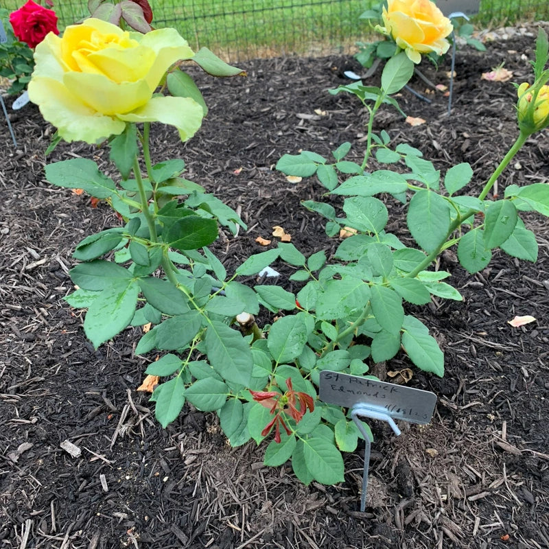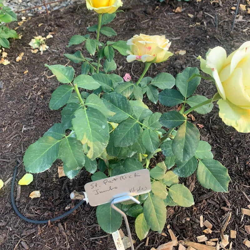 This slow-opening rose develops its best color and form in hot weather. The flowers open slowly to reveal satiny-yellow petals brushed in chartreuse-green during the warm weather. During cooler weather, the blooms have a more golden hue. This hybrid tea has fully double flowers and pretty gray-green foliage. Blooms all summer long. Plant in full sun to partial shade. Grows 3-4' tall. Zones 4-10. Rosa 'St. Patrick' WEKAMANDA PP9591