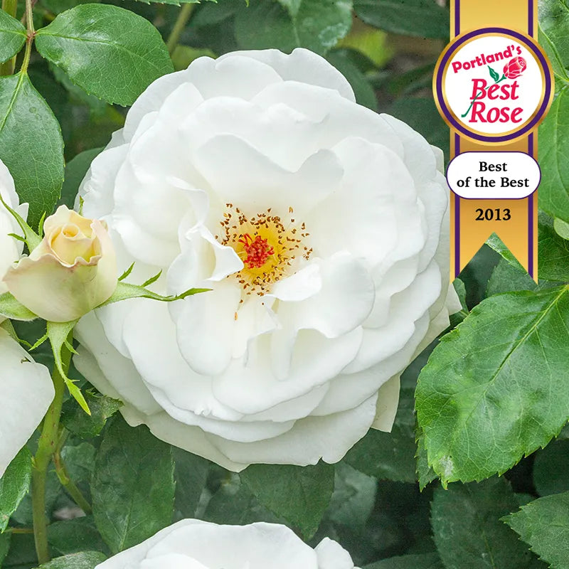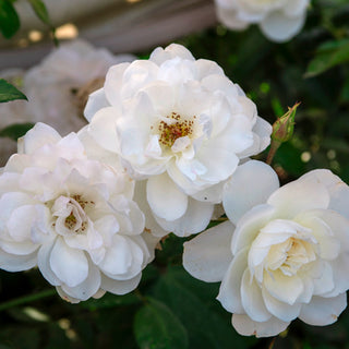 White roses are rarely fragrant, but the classically shaped flowers of this variety produce a powerful perfume reminiscent of blending citrus and cold cream. Its large, pointed and elegant buds spin open to display bright, 5" blooms that have more than 30 broad petals and are the color of moonlight. The plant's dark, glossy leaves set off these luminous flowers all the more. This rose is a reliable rebloomer with natural vigor and long stems, making it perfect for fresh-cut floral arrangements. An entire room can easily be perfumed by placing just a few of these flowers in a vase. On top of everything else, Sugar Moon is very good at resisting disease. Flowers tend to grow larger in cooler temperatures. Rosa 'WEKmemolo' PP23475