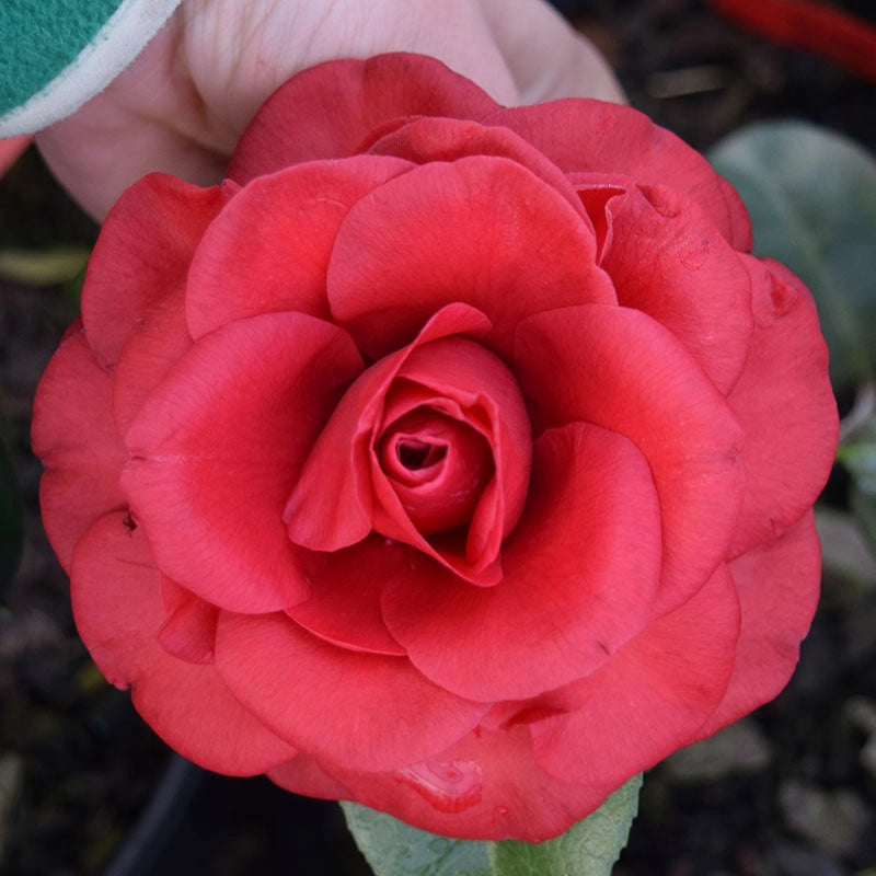 We simply adore this compact camellia variety. From its dazzling dark red, formal blooms to its waxy, evergreen foliage, this one's a real winner. Like its contemporaries, Tom Knudsen prefers protected, lightly shady sites where its abundant blooms can flourish without fear of sun scald and wind burn in the winter months. And thanks to its size, it makes a wonderful foundation shrub or flowering hedge. Planted in a dappled border or woodland garden, it fills the area with fragrance and color during a time when little else is blooming. Perfect for fresh floral arrangements, too. Easy to grow and maintain, camellias boast a long bloom time and need only well-drained soil to thrive. Camellia japonica 'Tom Knudsen'