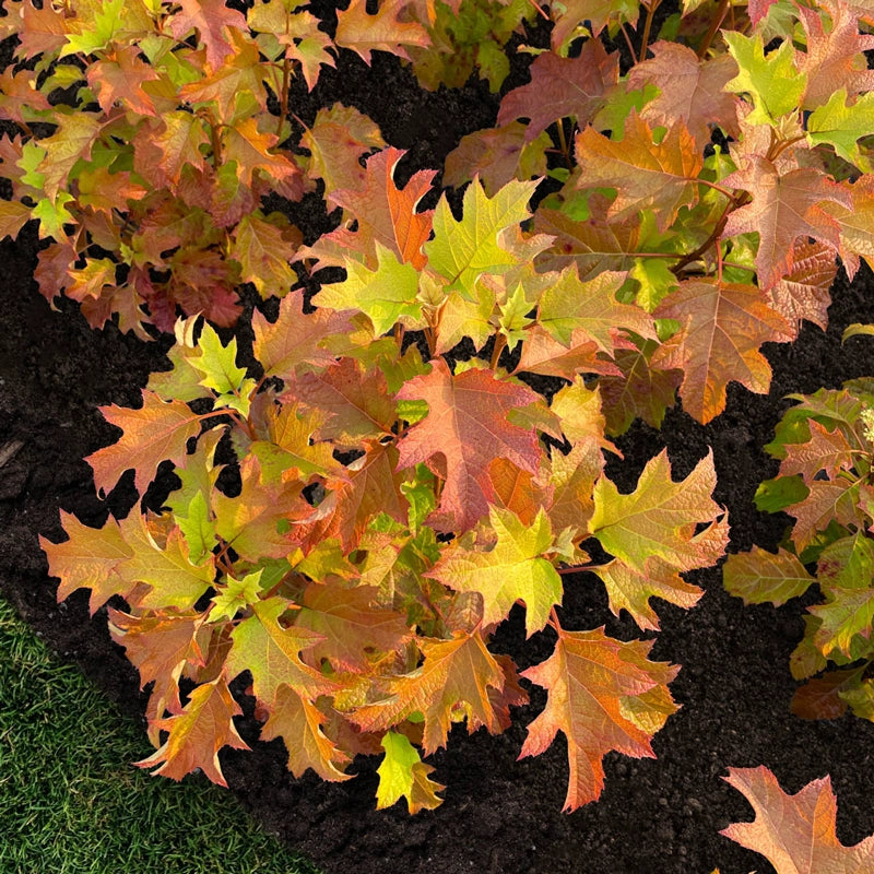The Toy Soldier Oakleaf Hydrangea offers strong structural presence and season-spanning color. Named for its sturdy, soldier-straight stems, this compact variety supports white-and-green flower clusters that stay neat and showy throughout the season. As fall approaches, the foliage of this native selection shifts from warm orange tones to deep vermillion red, giving the shrub a dramatic finish before winter. Enhanced resistance to leaf spot adds to its durability, ensuring healthy foliage and a cleaner appearance all year long.