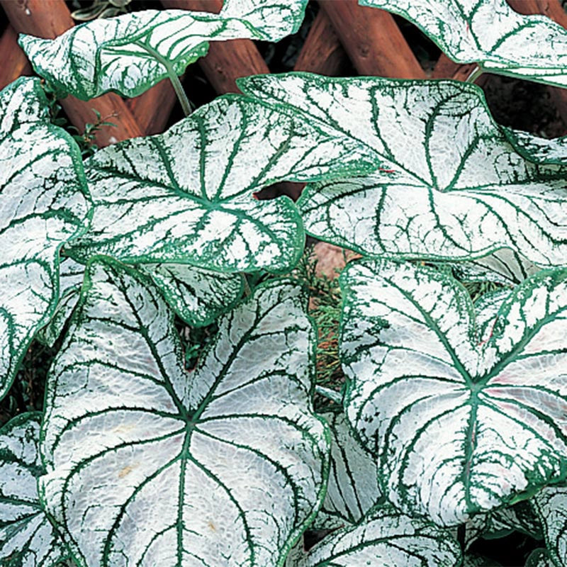 Grown specifically for their ornamental foliage, Caladiums offer spectacular color through the summer. With colors that range from red to a pale pink, to white and deep rose, they can enhance almost any shady area, from patios and decks to shaded corners of the garden. Plant them in shady window boxes where sun-loving annuals won't grow. Ideal for conservatory or warm porch during winter.