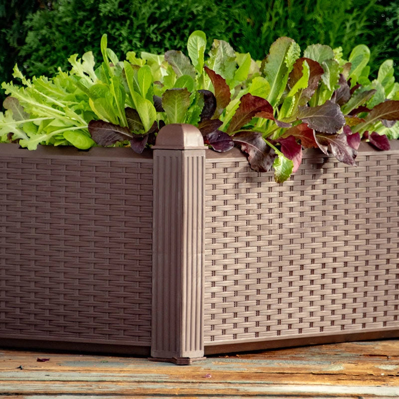 Make the most of a small space with this charming little raised garden bed. It's a 39"x39" square and deeper than most at 11". This depth gives you plenty of room for growing larger plants and tubers like potatoes and our top-size flower bulbs. If you're looking to create a veggie garden on a small patio, the included twine dividers will be helpful in keeping your vegetables organized. The bed is easy to build in just a few minutes, no tools necessary. It's also lightweight for easy handling in a small place. And you don't have to sacrifice your aesthetic either, the wicker pattern adds some decorative flair. It comes with an attachable dome frame that you can lay tarp or netting over for protection from frost or insects. 39"Lx39"Wx11"D; Dome height: 37" (frost cover/insect netting not included)